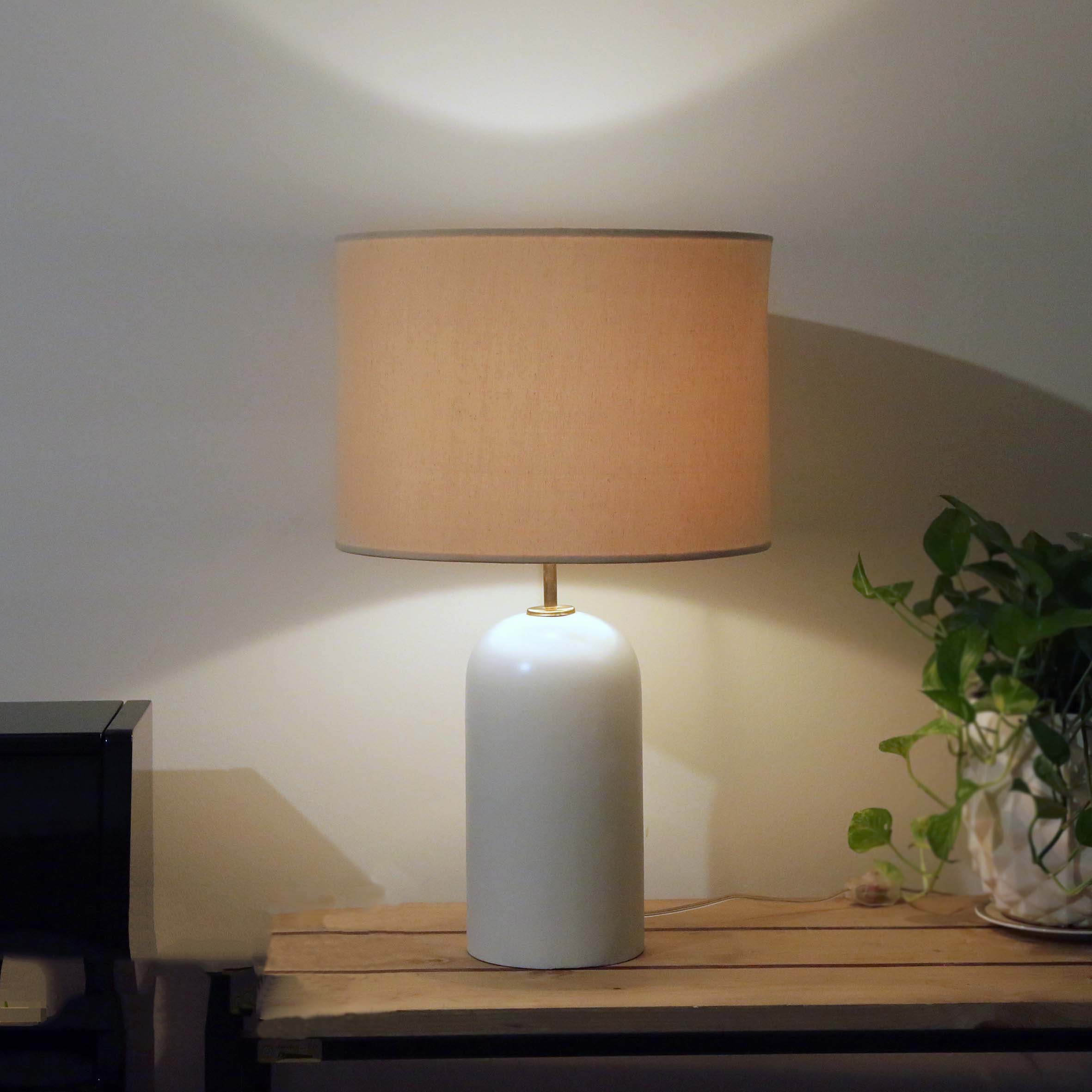 آباژور رومیزی مدرن با طراحی ساده و رنگهای آرام مثل بژ، طوسی یا شیری، گزینهای مناسب برای فضای خواب است.