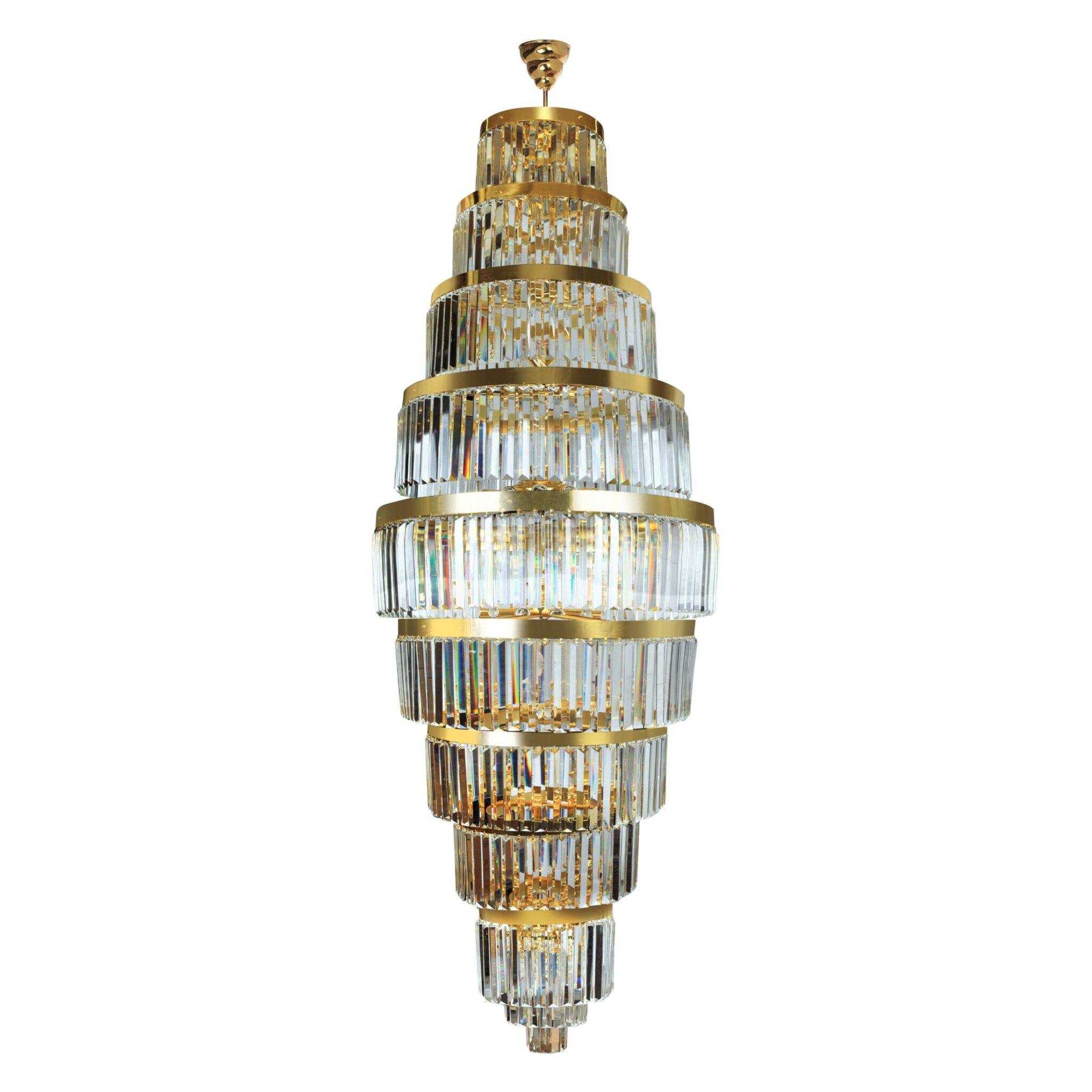 قسمت های فلزی آبکاری شده به رنگ طلایی در این لوستر فلزی ۹ طبقه منحصرا برای سبک چیدمان کلاسیک طراحی شده است. کریستال های استفاده شده در این مدل از مرغوب ترین کریستال های موجود در بازار می باشد که همین نکته در زیبایی ، جلوه و نوردهی این مدل تاثیر مثبتی دارد.