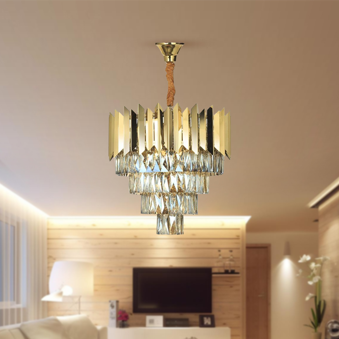 عموما افراد رنگ طلایی را رنگ تجمل وثروت و درخشش فلزات طلایی را نماد حداکثری طراحی دکوراسیون کلاسیک می دانند ، اما رنگ طلایی می تواند گرما و راحتی خوبی ایجاد کند و در سبک دکوراسیون مدرن نیز بکار رود. کریستال های استفاده شده در این مدل از مرغوب ترین کریستال های موجود در بازار می باشد که همین نکته در زیبایی ، جلوه و نوردهی این مدل تاثیر مثبتی دارد.