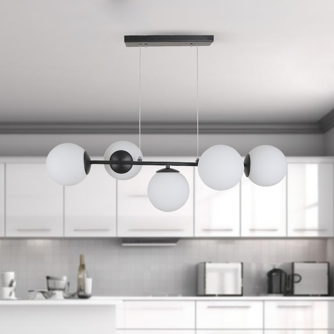 شرح کالا : نور و روشنایی محیطهای بسته به وسیله لوستر، چراغ، لامپ وغیره تامین میشود. در این میان لوستر کارایی بسیار زیادی در روشنایی منزل دارد زیرا ظاهر زیبای آن محیط یک خانه را زیباتر میکند. لوستر آویز مولکولی کد A1230/5 تنها به انحصار صنایع لوستر سازی چشمه نور تولید می شود. لوستر مدرن یکی از بهترین و پرطرفدارترین انواع آویز در صنعت دکوراسیون داخلی است که در چند سال اخیر با استقبال بسیار زیادی مواجه شده است. این گروه از لوسترها بخاطر تلفیق زیبایی، نورپردازی مناسب و سادگی و همچنین قیمت مناسب توانستهاند در محیطهای مسکونی، اداری و تجاری کاربرد گستردهای داشته باشند. جنس بدنه این محصول از فلز آهن با پوشش مقاوم رنگ الکترواستاتیک میباشد. میتوانید در تنوعات محصول رنگ مورد نظر خود انتخاب و خرید کنید. تنوعات این محصول بدین شرح می باشد: حباب مشکی با رنگ بدنه مشکی،حباب مشکی با رنگ بدنه زیتونی،حباب مشکی با بدنه سفید، حباب مشکی با بدنه طوسی و حباب سفید با رنگ بدنه مشکی، حباب سفید با رنگ بدنه زیتونی، حباب سفید با بدنه سفید و حباب سفید با بدنه طوسی که رنگ حباب داخل تصویر قابل مشاهده است و رنگ بدنه از داخل تنوعات محصول قابل انتخاب است.این محصول با سرپیچ E14 با توجه به سایز حباب های آن تولید شده است.این محصولات در هیچ شرایط اب و هوایی اسیب نمی بینند. این مدل از محصولات برای فضاهایی از قبیل بالای اوپن ، بالای میز نهار خوری و فضا های مشابه بسیار مناسب می باشد.