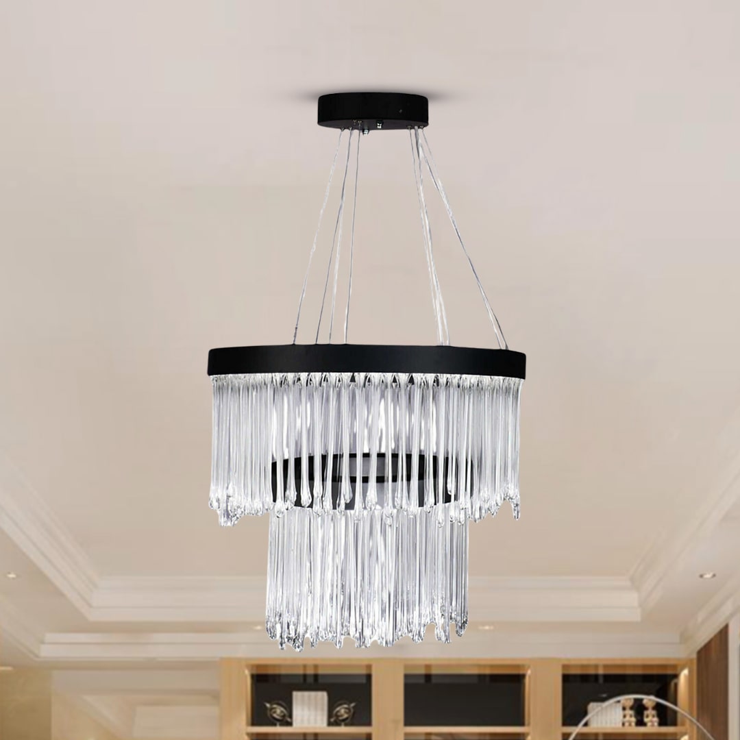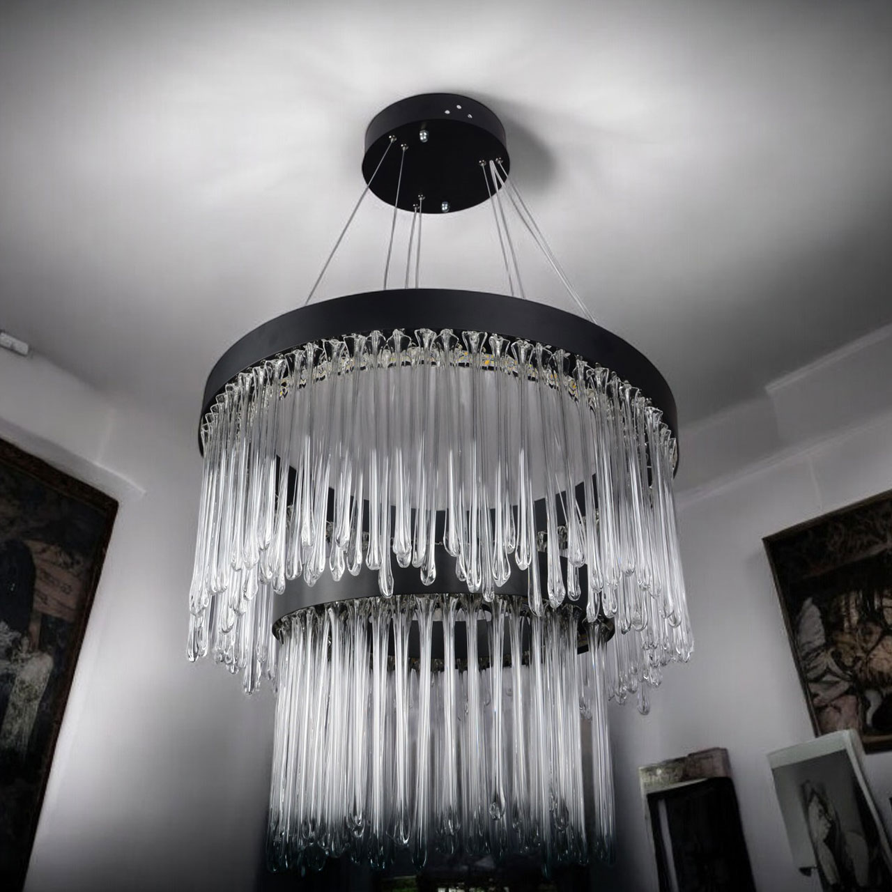 لوستر چشمه نور کد X4850/60BK با طراحی مدرن و جذاب خود، جلوهای خیرهکننده به هر فضایی میبخشد. کریستالهای شفاف قندیلی ، همچون قطرات بارانی که به نرمی بر زمین میچکند، با هر نوری که از آنها عبور میکند، رقصی از درخشش و زیبایی ایجاد میکنند. این لوستر با طراحی ظریف و طبقههای متوالی، زیبایی بصری را به اوج میرساند و به راحتی توجه هر بینندهای را جلب میکند. لوستر دو طبقه کریستالی ۴۸۵۰ ،با قطر ۶۰ و ارتفاع ۸۰ سانتیمتر، فضایی قابل توجه را پوشش میدهد. نوردهی آن با لامپ SMD تا ۱۵ متر را روشن کرده و مناسب فضاهای بزرگی همچون پذیرایی، کافهها و رستورانها است. پوشش استاتیک مشکی بدنه نه تنها جلوهای مدرن به آن میبخشد، بلکه مقاومت در برابر خط و خش را نیز تضمین میکند.