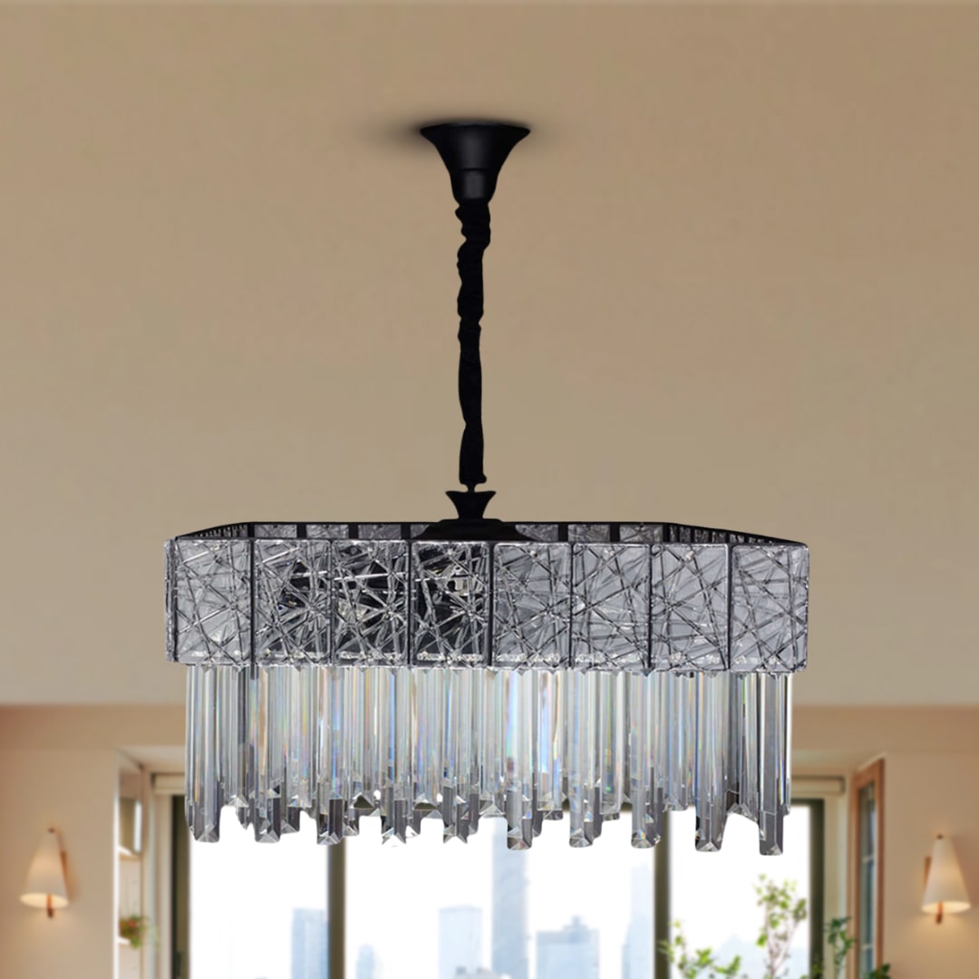 لوستر ۱۶ شعله چشمه نور کد N2435/60-60BK با طراحی ظریف و رنگ مشکی، تلفیقی از مدرنیته و طراحی کلاسیک را به فضای شما میآورد. ترکیب منحصربهفرد رنگ مشکی بدنه و چیدمان منظم و یکپارچه کریستالهای شفاف، این چراغ آویز را به انتخابی بینظیر برای دکوراسیونهای مدرن و مینیمالیستی تبدیل کرده است. نقشهای ظریف کریستال های نصب شده بر روی فریم این چراغ آویز، زیبایی آن را دوچندان کردهاند. این نقشها با دقت فراوان طراحی شدهاند و با بازتاب و شکست نور از زوایای مختلف، جلوهای شیک و منحصربهفرد از بازی نور و سایه ایجاد می کنند. این لوستر کریستالی با طراحی مربعی و ابعاد ۶۰ در ۶۰ و ارتفاع ۵۰ سانتیمتر، جلوهای متعادل و مناسب برای فضاهای بزرگتر دارد. این لوستر مجهز به ۱۶ عدد سرپیچ از نوع E14 است که امکان استفاده از لامپهای کوچک و کممصرف را فراهم میکند. با متراژ نوردهی ۲۰ متر مربع، این لوستر برای فضاهای بزرگ و متوسط ایدهآل است و نور کافی و یکنواختی را فراهم میسازد. پوشش استاتیک بدنه، علاوه بر افزایش مقاومت نسب به خط و خش و رطوبت، جلوهای مدرن و شیک به آن بخشیده و فضایی با ابهت و خاص ایجاد میکند.