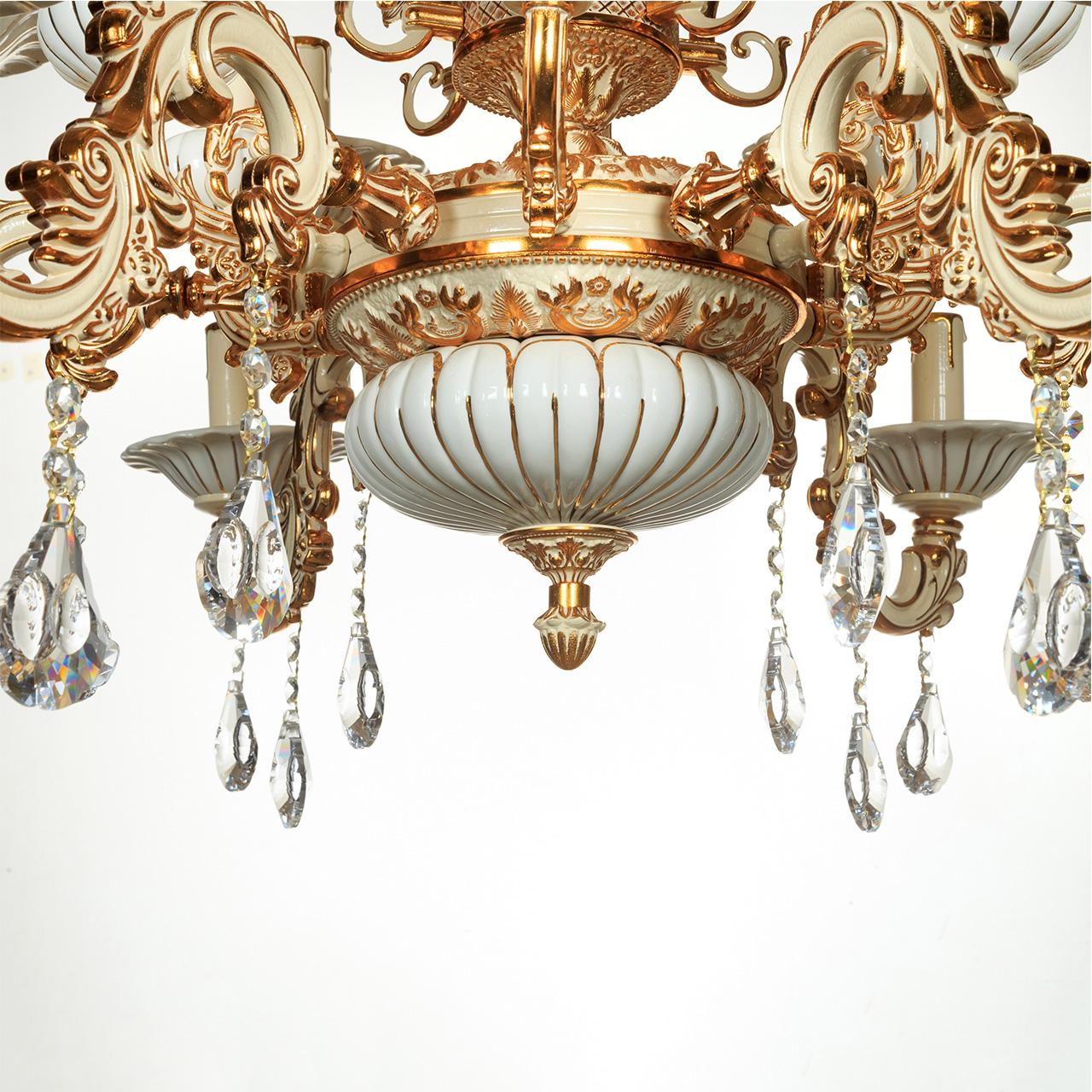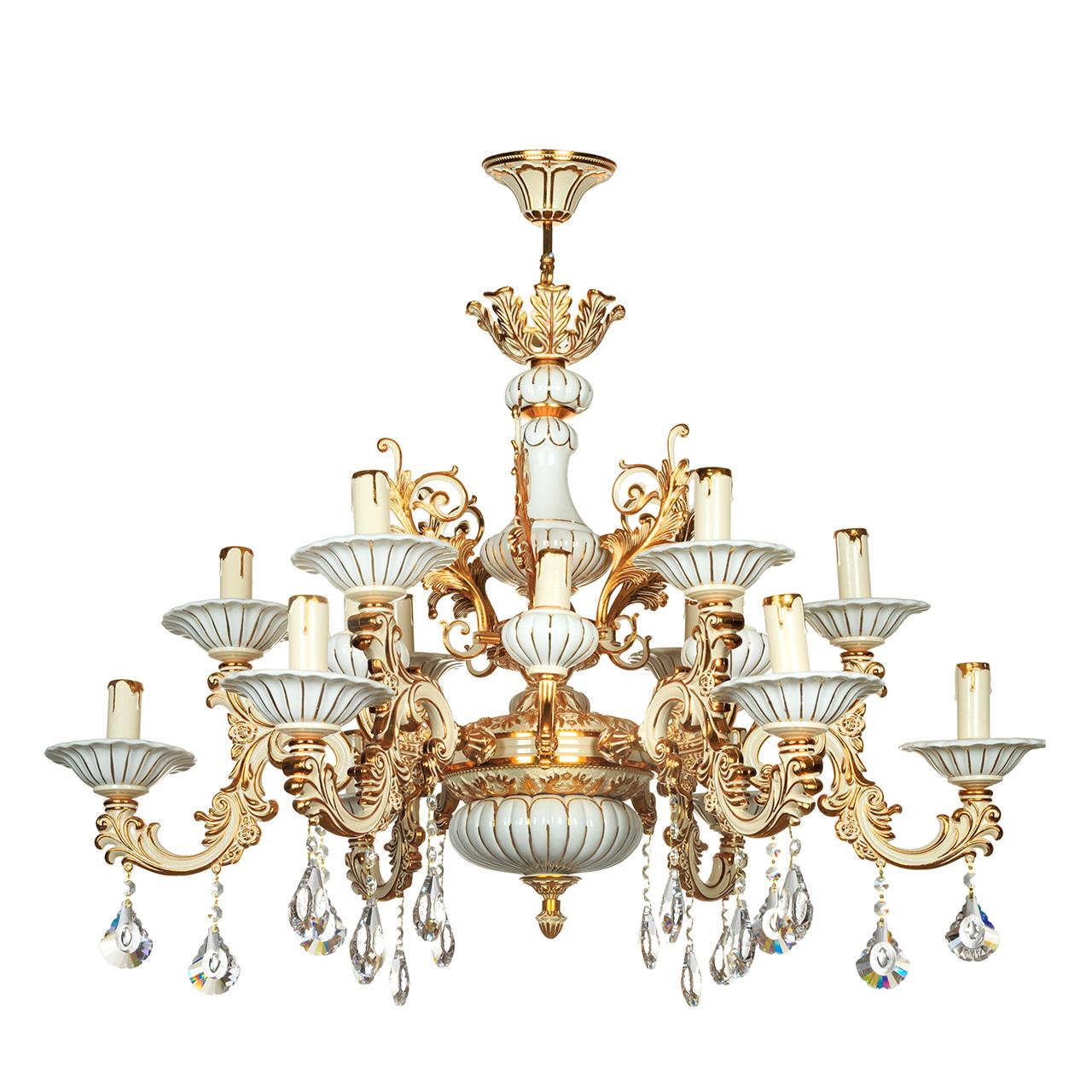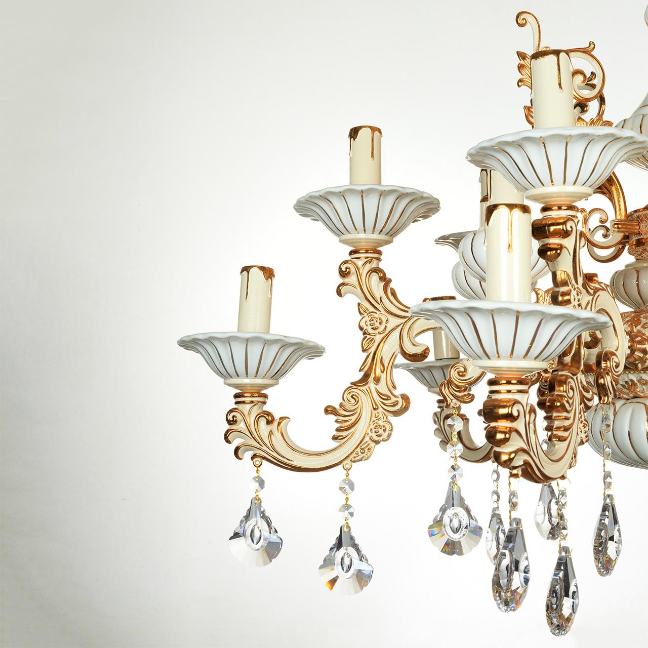 لوستر ۲۴ شعله چشمه نور کد ۳۶۵۵ طلایی کرم
