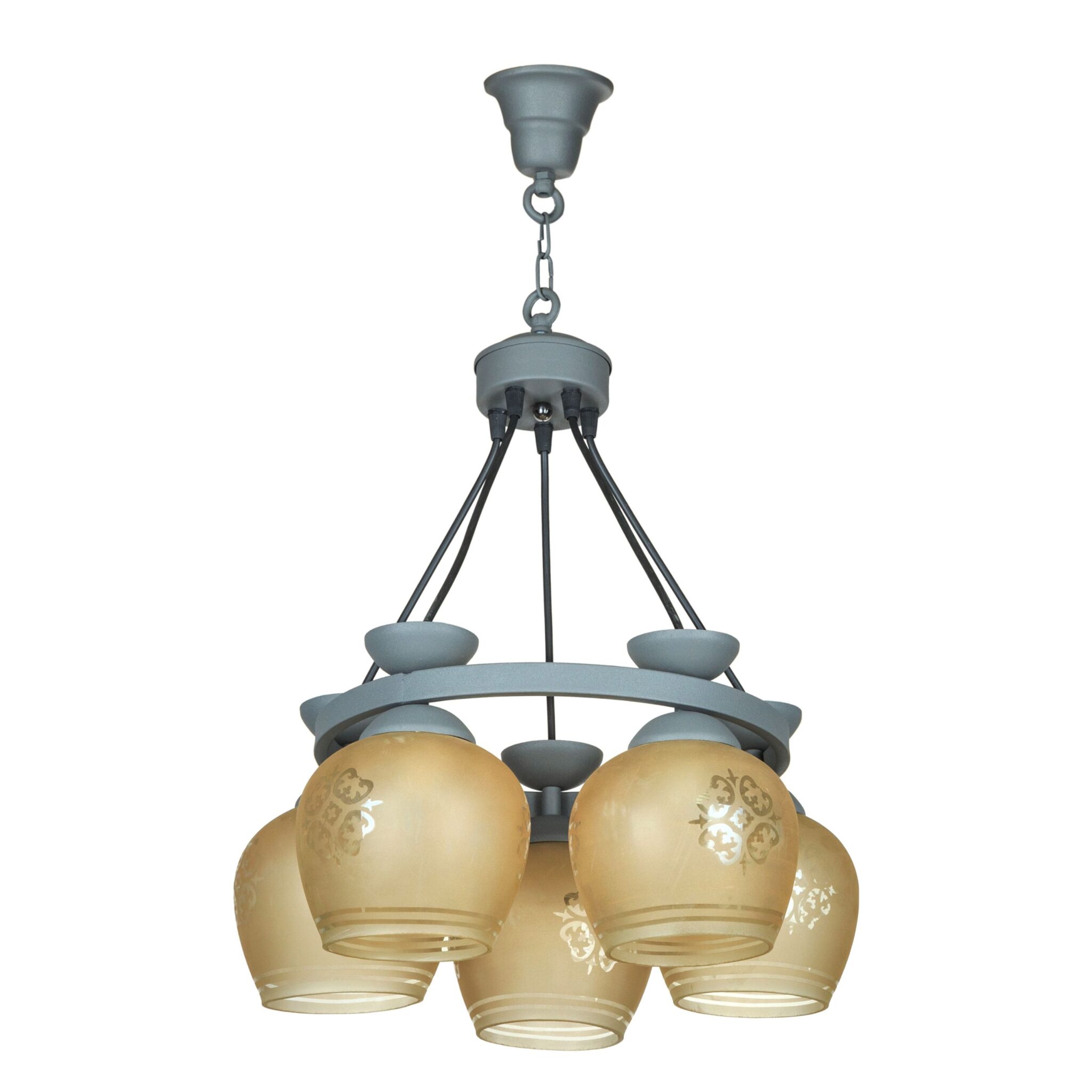لوستر ۵ شعله چشمه نور کد ۱۹۰۲/5T طوسی قابل استفاده در فضای پذیرایی ، آشپزخانه و اتاق خواب می باشد.