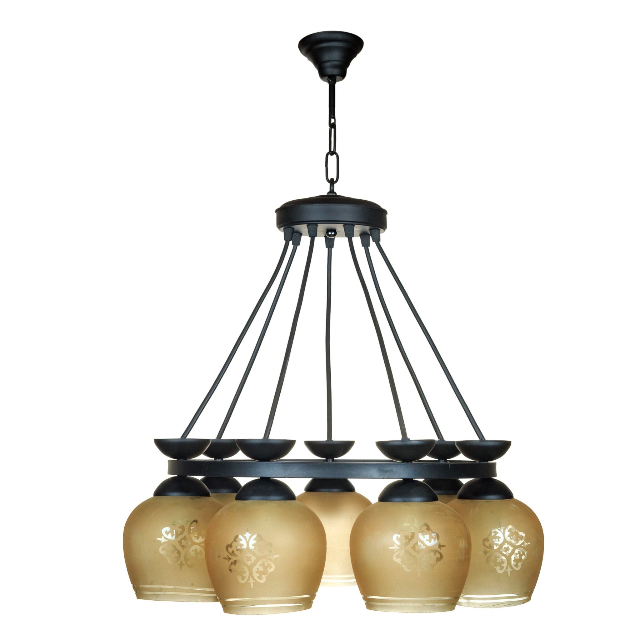 حباب های طرحدار لوستر ۷ شعله چشمه نور کد ۱۹۰۲/7BK مشکی حس و حال نوستالژیک و صمیمی به این مدل داده است که شما می توانید علاوه بر سبک مدرن از آن در سبک دکوراسیون نئوکلاسیک و همچنین سنتی استفاده نمایید.