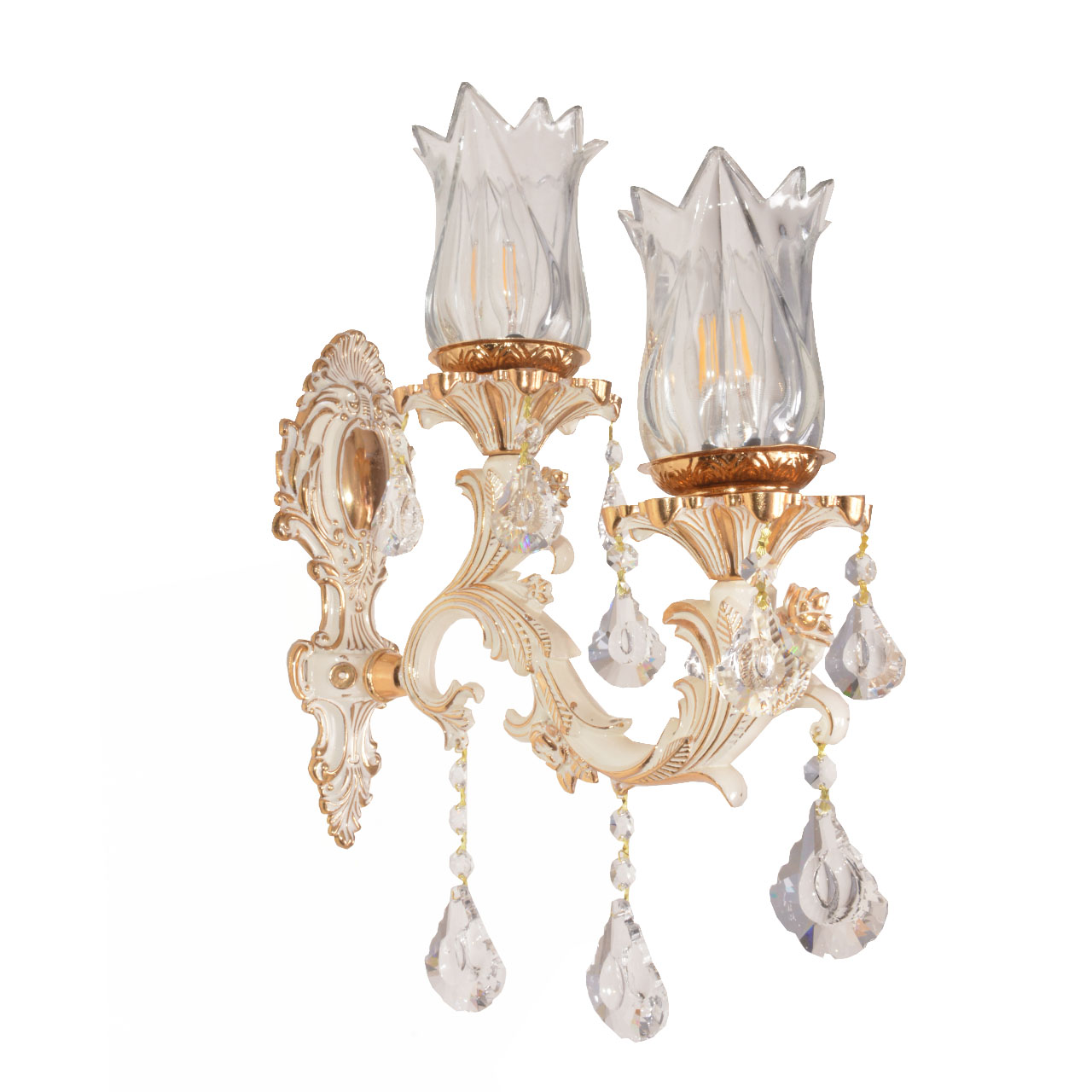 چراغ دیواری آلومینیوم آبکاری طلا با رنگ سفید (طلا فرانسه)چشمه نور کد M3436/1GWT